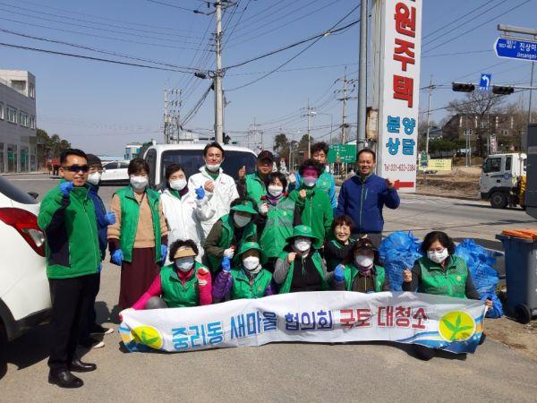 중리동 새마을남녀협의회는 지난 20일 30여명의 회원이 참여한 가운데 중리동 관내 공원 및 버스승강장 방역활동을 실시한 이후 대대적인 ‘봄맞이 국토대청소’를 실시했다.