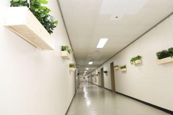 시는 공기정화식물로 알려진 대형 뱅갈고무나무를 화분 4개로 2층 복도 기둥 옆에 배치하고 호야, 무늬산호수, 아이비 등의 70개 화분은 5층과 6층 복도 벽면에 설치했다.