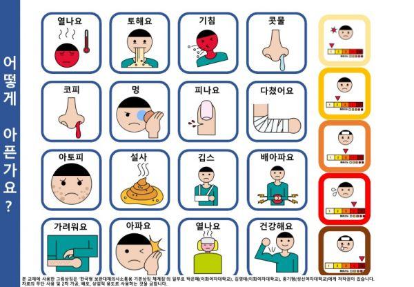 자료에는 어디가 어떻게 아픈지를 표현하는 상황도 포함되어 있어 코로나19 상황에서 장애학생이 자신의 건강 상태를 표현하는 의사소통 도구로도 활용할 수 있다.