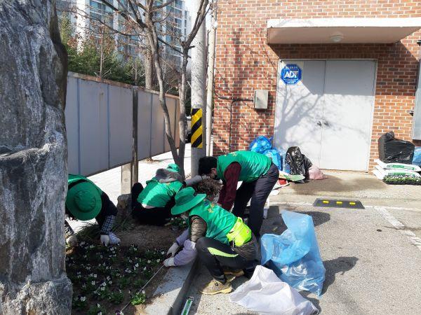 김포본동 남·녀새마을지도자들은 지난 20일 북변터미널 인근 대형화분 60개와 행정복지센터 주변에 봄꽃을 식재했다.