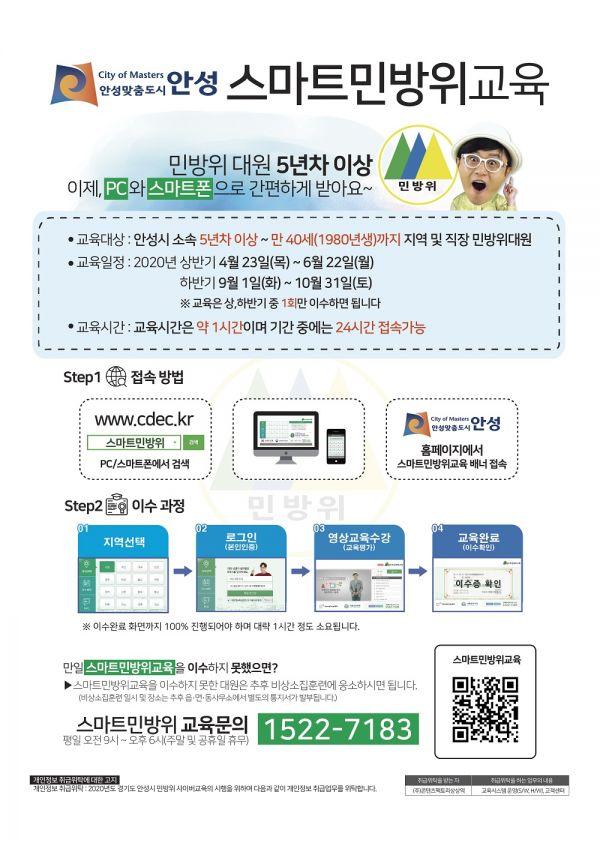 수강은 안성시 홈페이지나 인터넷 포털에서 스마트민방위교육 사이트에 접속한 뒤 본인인증을 거쳐 진행된다.