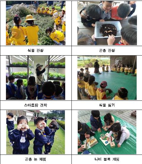 자생화류 및 채소류 관찰, 스마트팜·아쿠아포닉스 견학 및 식물 심기, 곤충 관찰 등