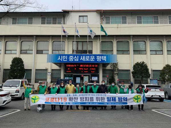 평택시 신평동 새마을남녀지도자는 지난 21일 신평동의 주요 인구 밀집 지역에서 코로나19 방역활동 및 환경정화작업을 실시했다.