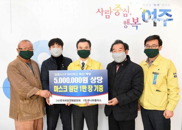이에 이항진 여주시장은 “마스크 착용이 매우 중요한 시기에 봉사단체의 적절한 지원으로 코로나19 극복에 동참한 것에 깊이 감사드린다”고 전했다