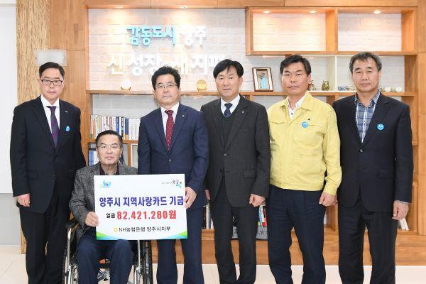 NH농협 양주시지부은 23일 양주시청을 방문해 제휴카드 기금 8천여만원을 전달했다.