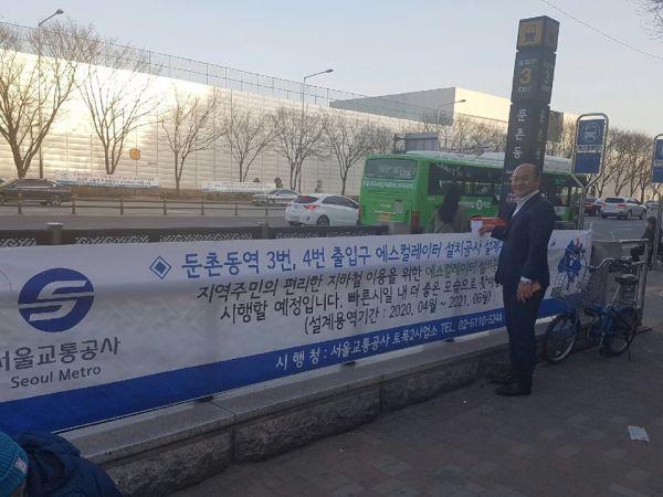 황인구 서울시의회 교육위원회 부위원장은 ‘둔촌동역 3번, 4번 출입구 에스컬레이터 설치공사 설계용역’이 착공됨에 따라 둔촌동역 에스컬레이터 설치가 더욱 가시화됐다고 전하며 향후 공사 추진을 통해 주민의 교통시설 이용 편의가 더욱 커질 것이라고 밝혔다.