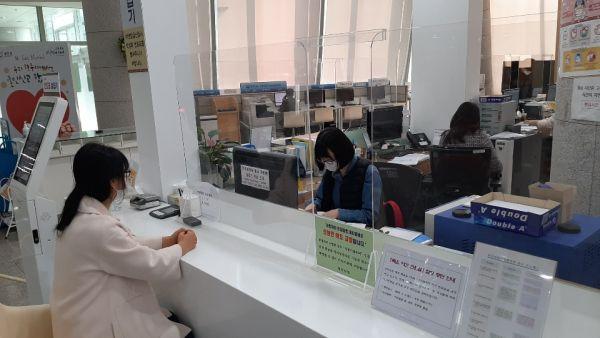 광주시는 24일 코로나19 확산방지를 위해 시청사, 읍·면·동 등의 민원창구에 비말 차단시설을 설치했다.