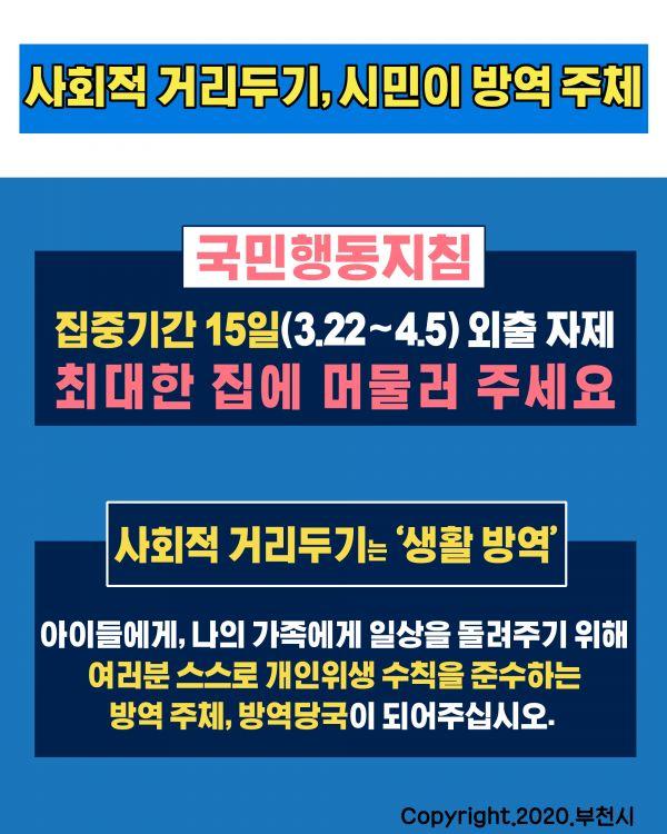 장덕천 부천시장은 “외국을 다녀온 시민 중 발열 또는 기침, 인후통 등 호흡기에 문제 증상이 나타날 경우 반드시 질병관리본부 콜센터 1399나 보건소로 먼저 신고 부탁드린다”고 다시 한번 당부했다.