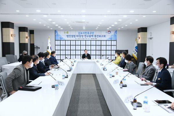 김포시는 지난 23일 소통실에서 김포시민축구단 법인설립 타당성 연구용역 중간보고회를 개최했다.