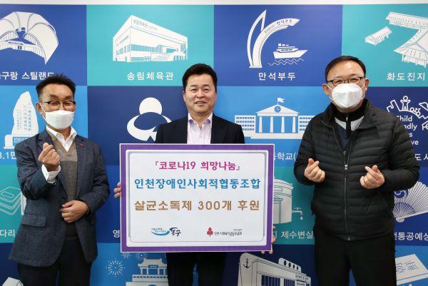 인천 동구는 지난 23일 인천장애인사회적협동조합에서 보내 온 코로나19 방역지원물품 전달식을 가졌다.