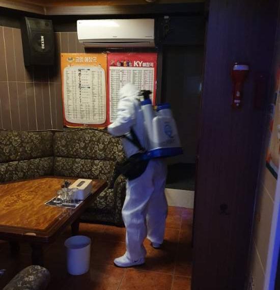 사무국장 등 3명으로 구성된 방역반이 유흥주점이 밀집된 의정부동을 총 3구역으로 나누어 방역소독을 실시했으며 감염병관리책임자 지정, 이용자 및 종사자 마스크 착용, 발열, 인후통, 기침 등의 유증상자 출입금지, 이용자 명부 작성 및 관리, 출입구에 손소독제 비치, 업소 내부 주기적 환기, 영업전후 각1회 소독 및 청소를 실시하는 등의 다중이용시설의 준수사항을 이행토록 안내했다.