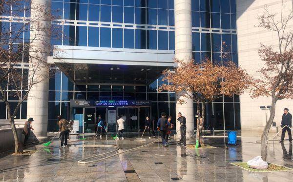 코로나19 확산 방지를 위한 휴관기간 중 진행된 이번 환경 정비는 학습실 바닥 왁스 작업 및 도서관 계단 물청소 등, 도서관 운영기간에 청소하기 어려운 부분에 중점을 두어 진행했다.
