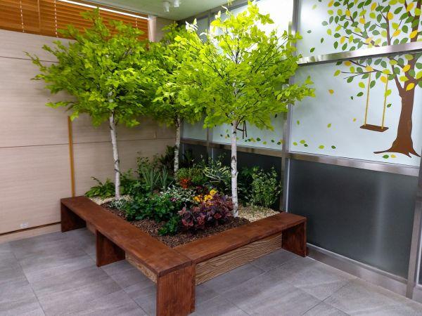 편안하고 쾌적한 실내 환경 조성을 위해 설치한 화단에는 자작나무 조화 3그루 및 각종 초화류를 배치해 실내에서도 Green & Beauty를 체감할 수 있도록 하고 나무의자를 같이 설치함으로써 민원실을 방문하는 주민들에게 자연친화적인 휴식공간을 조성했다.