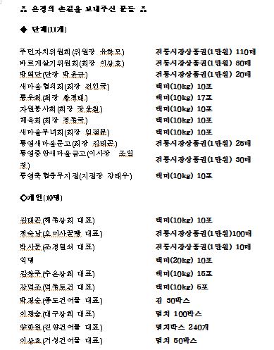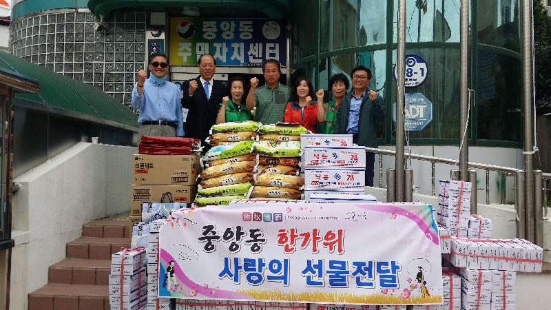 추석맞이 사랑의 선물은 어려운 이웃들과 온정을 나누고자 노력하는 중앙동주민자치위원회를 비롯하여 관내 21개의 단체 및 개인으로부터 백미, 멸치, 김 등을 기탁 받아 마련했다.