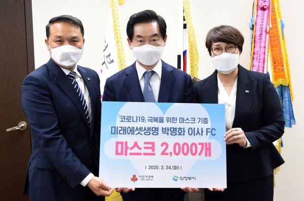 미래에셋생명 의정부지점 박명화 이사 FC는 24일 코로나19 확산 방지 및 지역사회에 도움이 되기 위해 의정부시에 마스크 2,000매를 기탁했다.