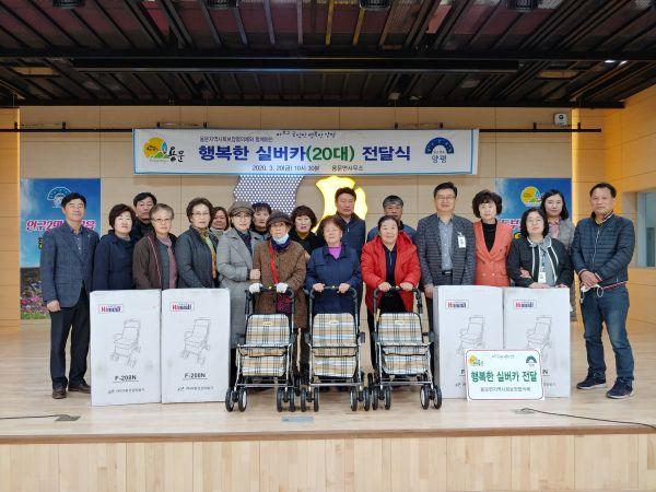 용문면지역사회보장협의체는 지난 20일 용문면사무소 대강당에서 ‘용문면지역사회보장협의체와 함께하는 행복한 실버카 전달식’을 통해 관내 거동이 불편한 취약계층 어르신들에게 전달되길 바라며 실버카 20대를 후원했다.