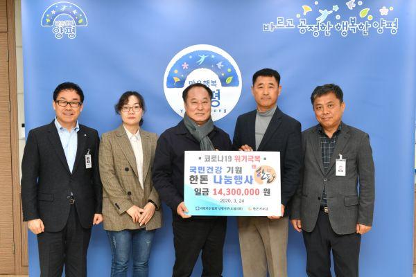 사)대한한돈협회 양평군지부는 24일 양평군에 1천4백3십만원 만원 상당의 돼지고기 1,787.5kg을 기부 했다.