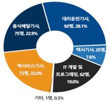 수입에서 건당 수수료나 요금이 차지하는 비중은 퀵서비스기사 87.5%, 대리운전기사 87.0%, 음식배달기사 80.0% 등으로 나타났다.