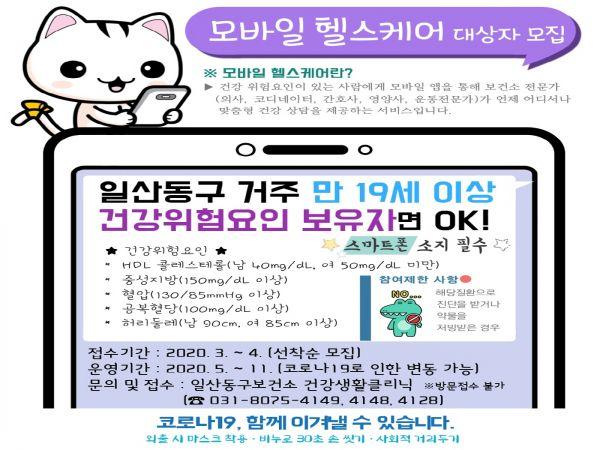 고양시 일산동구보건소는 모바일 헬스케어 참여자를 모집한다고 25일 밝혔다.
