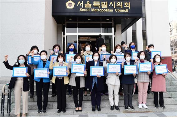 서울특별시의회 여성의원들은 지난 24일 서울시의회 본관계단에서 텔레그램 ‘N번방’사건 가해자 강력 처벌과 재발 방지 방안을 촉구하는 결의 대회를 가졌다.