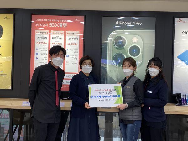 SK티월드 양평동운대리점에서는 매번 양평의 어려운 이웃들을 위해서 나눔을 실천해왔으며 이번 코로나19 예방을 위해서도 손세정제 500개를 어렵게 구해 사회복지기관에 전달했다.