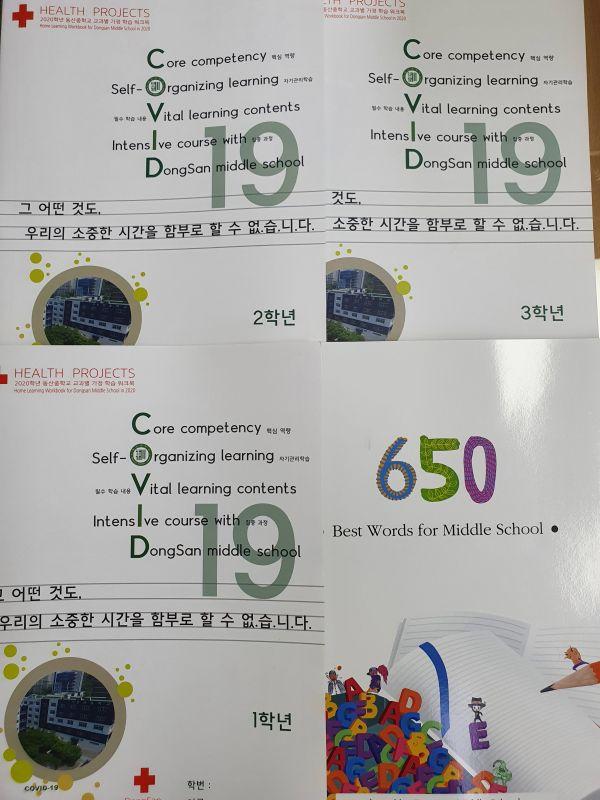 동산중학교에서는 개학 연기로 인한 휴업 기간 중 학생들의 학습을 지원하기 위해 학교 홈페이지에 각 교과별 학습자료를 탑재하고 있으며 23일에는 온라인과 더불어 오프라인 학습을 지원하기 위한 ‘교과별 가정학습 워크북’을 학년별로 제작해 우편으로 학생에게 전달해 큰 호응을 얻고 있다.