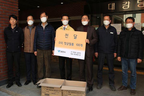 아울러 과천시는 전국재해구호협회로부터 전달받은 2리터 용량의 가정용 소독제 1,000개를 상가와 종교단체, PC방, 노래방 등 다중이용시설에 대해 배부한다.