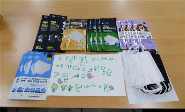 손 편지에는 ‘가족이 모아둔 마스크를 선물로 드려요. … 항상 우리들 곁에서 코로나19 힘써 주시고 감사한다…’라는 사연을 함께 보내왔다.