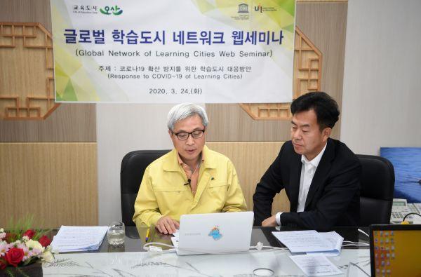 웹세미나에는 곽상욱 오산시장 외에도 중국 우한시 교육과학 아카데미 연구원, 이탈리아 토리노시 교육부 관계자, 브라질 상파울로시 국제부 서기관이 COVID-19 관련해 발표했으며 유네스코 평생학습연구소 프로그램 스페셜리스트인 Marie Macauley의 사회로 90분 동안 진행됐다.