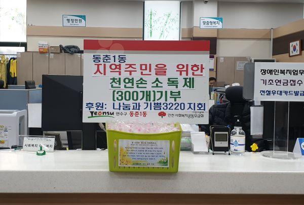 코로나19 확산으로 전국이 비상인 가운데 동춘1동 행정복지센터에 지역주민들의 온정의 손길이 이어지고 있다.
