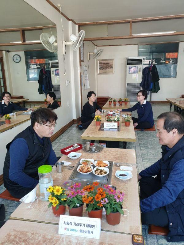 캠페인을 위해 관내 오금동 소재 덕인농원에서 삼송상점가상인회에 화분 400개를 기증했으며 기증받은 꽃은 50여개의 식당 내 한 칸 씩 띄운 테이블 위에 배치됐다.
