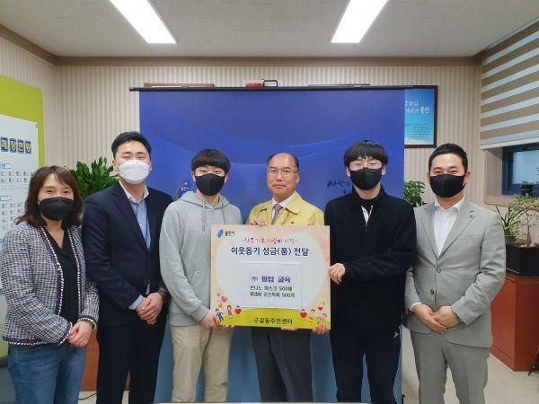 기흥구 구갈동 ㈜필탑교육 고승완 대표도 구갈동 행정복지센터를 찾아와 은나노마스크 500매와 휴대용 손소독제 500개를 기탁했다.
