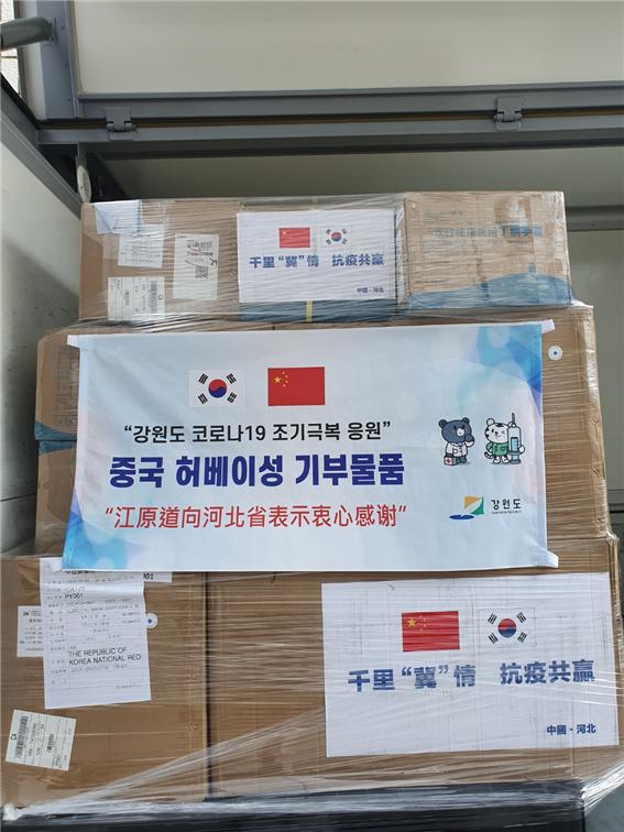 강원도 우호교류 지자체인 중국 허베이성에서 도내 코로나 방역을 지원하기 위해 마스크 2만장과 의료용장갑 5천쌍을 보내왔으며 25일 강원도에 도착했다.