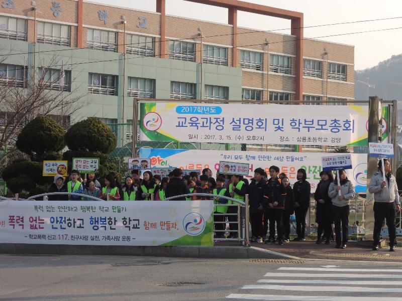 [미디어 타임즈 = 최귀복 기자] 거제 삼룡초등학교(교장 배경혜)는 지난 13일(월) 아침 8시부터 학교 정문에서 전교 임원 및 4학년 ~ 6학년 학급임원, 각 학년 대표 교사, 학교폭력전담 경찰관이 참여한 가운데 ‘학교폭력 멈춰’ 캠페인을 실시하였다. 또한, 아침활동 시간을 이용하여 전교 임원 및 학급 임원들이 교내를 돌면서 ‘학교폭력 멈춰’캠페인을 계속하여 학생들이‘학교폭력 멈춰’운동을 실천하기로 다짐하는 계기를 마련하는 시간을 가졌다. 캠페인에 동참한 여러 구성원들은 임원들의 학교폭력 예방을 위한 구호 선창에 맞추어‘학교폭력을 근절하자’라는 마음을 모아 제창하였다. 그리고 학급에서는 담임교사의 캠페인 결의문 낭독 후 학생 모두 학교폭력 멈춰 서약서를 작성하였다. 또한, 학교교육과정 설명회 때 학부모가 함께 모여 선포식을 개최할 예정이어서 교육공동체가 참여하는 캠페인으로 실시될 계획이다. 캠페인에 참여한 정다원 학생은 쉬는 시간, 점심시간, 등하굣길에서 말다툼을 하거나 폭력을 하는 장면을 보면 큰 소리로 멈춰! 라고 외치기를 꼭 실천할 것이라고 하였다. 삼룡초등학교는 학교폭력과 따돌림 없는 안전한 학교를 만들기 위하여 학교폭력 멈춰 캠페인 및 인성 교육 실천 주간 운영 등 유사 프로젝트 일정과 연계하여 계속적으로 학교폭력예방 교육을 실시할 것이다.