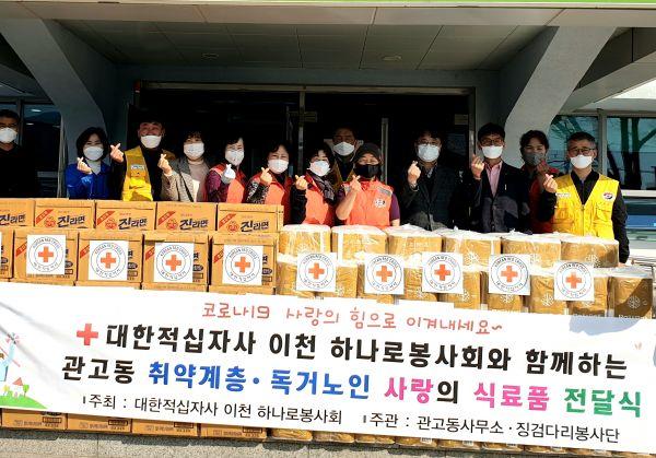 대한적십자 이천 하나로봉사회에서는 지난 25일 코로나19를 함께 극복하고 어려움을 나누고자 관고동 소외계층에게 라면 60박스와 휴지 60개를 기탁했다.