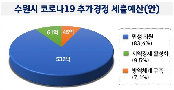 장기화되고 있는 코로나19 상황을 극복하기 위해 수원시가 638억원 규모의 제1회 추경을 긴급 편성했다.