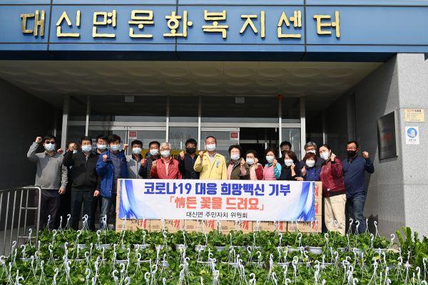 박건배 대신면주민자치위원장은 “코로나19로 경제가 어려워져 화분 출하에도 어려움이 많은 관내 농가에도 도움이 되고 큰 거는 아니지만 정을 나누는 의미의 달달한 초코파이를 드시면서 이 위기를 극복하시는 데 힘이 되었으면 한다”고 말했다.