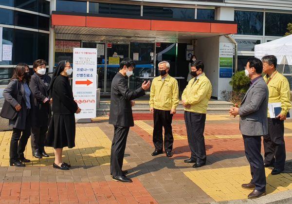 가톨릭의정부교구청 소속 동두천성당은 지난 25일 코로나19 예방과 지역 확산 방지를 위한 기도와 응원을 위해 동두천시 보건소 비상대책 상황실을 방문했다.