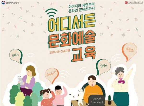 ‘어디서든 문화예술교육’은 온라인으로 즐길 수 있는 문화예술교육의 내용과 방식에 대한 창의적인 생각을 발굴하고 우수 기획안은 온라인 콘텐츠로 제작해 국민들이 언제, 어디서든 문화예술교육을 경험할 수 있도록 제공하는 사업이다.
