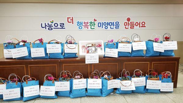 취약계층 영양식품 나누기 사업은, 코로나19 전염병 확산방지를 위해 경로당 및 노인복지관 등 휴관 되어 중식 해결에 어려움이 있고 거동불편으로 마트에서 장보기가 어려운 65세 이상 생활수급자 40가구를 대상으로 영양식품과, 정서적 우울감 해소를 위한 꽃화분 나누기 사업이다.