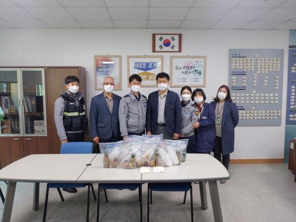 안성 공도지구대는 익명의 기부자가 전달한 정성스럽게 포장된 먹거리와 마스크를 지난 24일 공도읍 행정복지센터에 기탁했다.