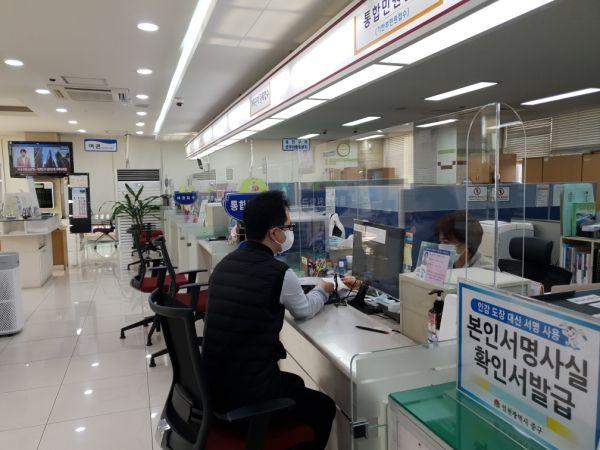 인천 중구는 하루 평균 200명이 넘게 방문하는 종합민원실에 코로나19 감염예방의 일환으로 투명가림막을 설치했다.