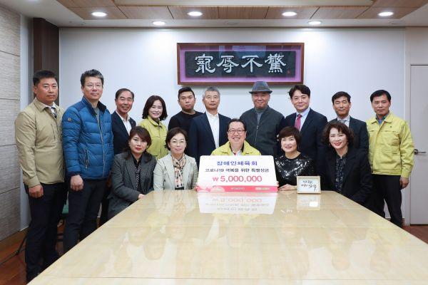 남양주시 장애인체육회는 26일 시장 집무실에서 코로나19 확산에 따른 위기 극복과 취약계층 지원을 위해 후원금 500만원을 경기 사회복지공동모금회에 기탁했다.
