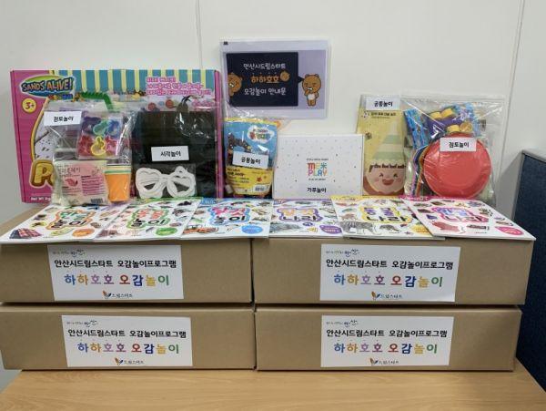 시는 전날 드림스타트 통합사례관리 취약가정 중 선정된 영유아 40가정에게 촉감놀이, 미술놀이, 시각놀이 등으로 구성돼 감각발달에 도움을 줄 수 있는 놀이키트를 택배로 전달하고 가정에서 자체적으로 프로그램을 운영토록 했다.