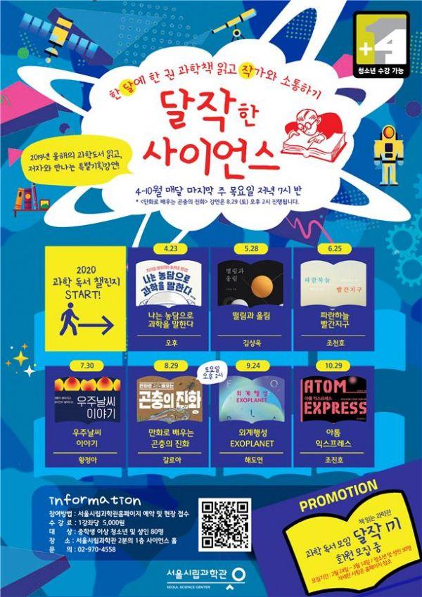 서울시립과학관은 ‘달작한 사이언스’란 이름으로 매달 마지막 주 목요일에 중학생 이상 청소년과 성인 80명을 선착순 접수받아, 북콘서트를 진행한다.