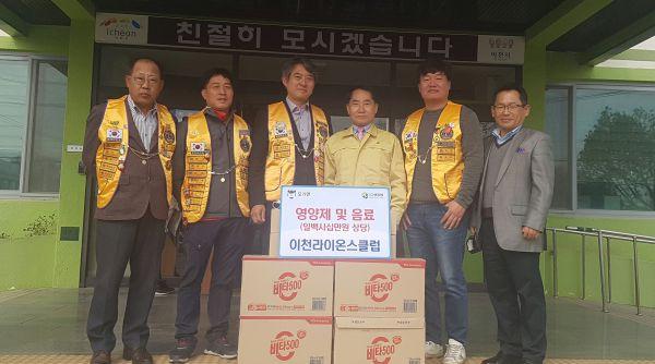 이천시 라이온스클럽은 지난 26일 모가면 행정복지센터를 방문해 신종 코로나바이러스로 어려움을 겪고 있는 관내 저소득층을 위해 면역력 강화를 위한 영양제와 음료등을 기탁했다.