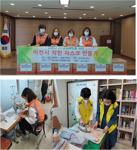 이천시육아종합지원센터는 이천시에서 코로나19로 인한 일회용마스크의 품귀현상을 대체하고 일회용품사용을 줄이기 위한 착한마스크 만들기 자원봉사에 참여함으로 면 마스크를 직접 만들어 코로나19로 인해 힘들어하는 마스크가 필요한 곳에 조금이라도 도움이 되고자 자발적으로 지원해 참여했다.