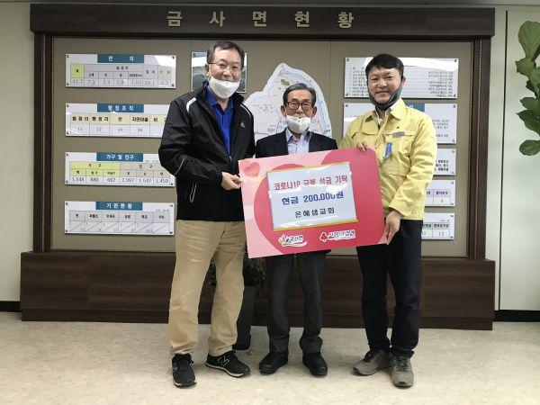 지난 26일 여주시 금사면 전북리에 위치한 대한예수교 장로회 소속 은혜샘교회에서 코로나19로 어려움을 겪고 있는 지역주민을 위해 써달라며 성금 20만원을 금사면에 기탁했다.