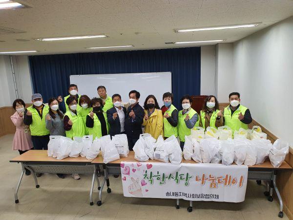 송내동 지역사회보장협의체, 착한식당에서 지원한 사랑의 물품 관내 어려운 이웃에게 전달