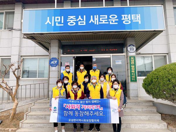 이인균 오성면장은 “위기를 함께 극복하기 위한 홍보 캠페인에 적극적으로 동참해주신 협의체에 감사드리며 코로나19의 빠른 종식과 나와 내 가족, 이웃의 건강과 안전을 위해 ‘사회적 거리두기’를 꼭 실천해 주시길 바란다”고 전했다.